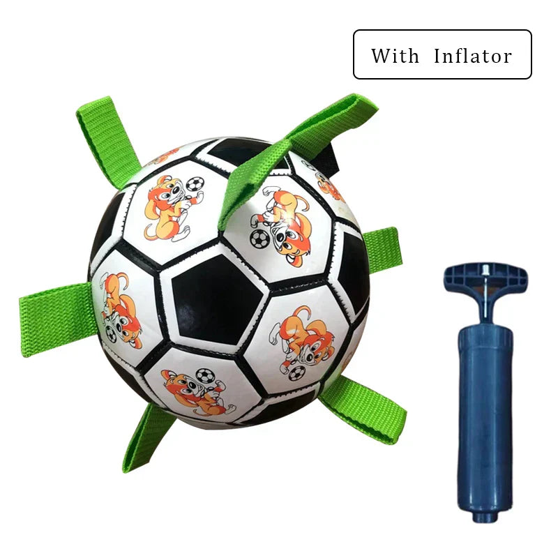 Durable soccer ball toy for dogs. Ideal for outdoor training and play, with a chew-resistant design for medium to large dogs.